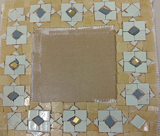 Aufkleben der fertigen Arbeit auf eine Trägerplatte, Montieren des Spiegels